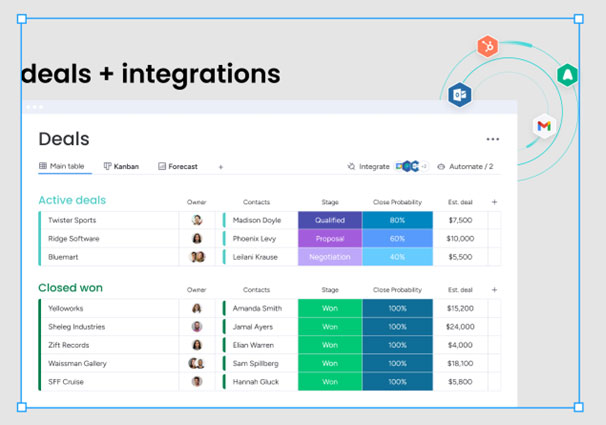 Connect monday.com with your CRM, ERP, HR, BI, and other tools for unified operations.